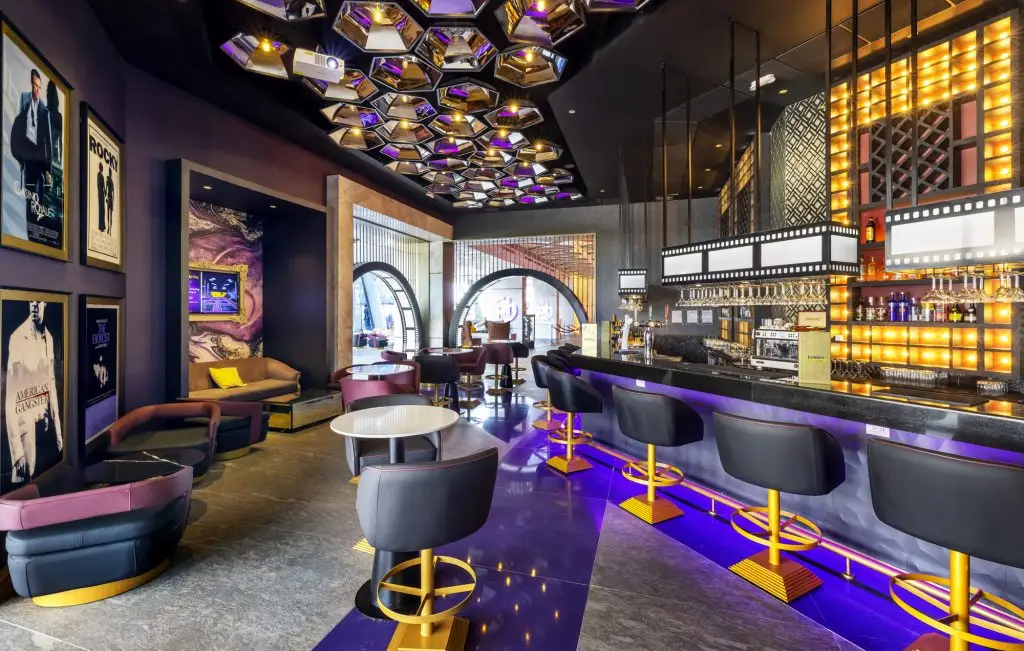 The entire property is themed around movies and Hollywood stars. You can find celebrity quotes inside the rooms. The rooms feature purple, gray, and white colors, creating an elegant and dynamic atmosphere. Each room has “PH” initials on the floor at the entrance.